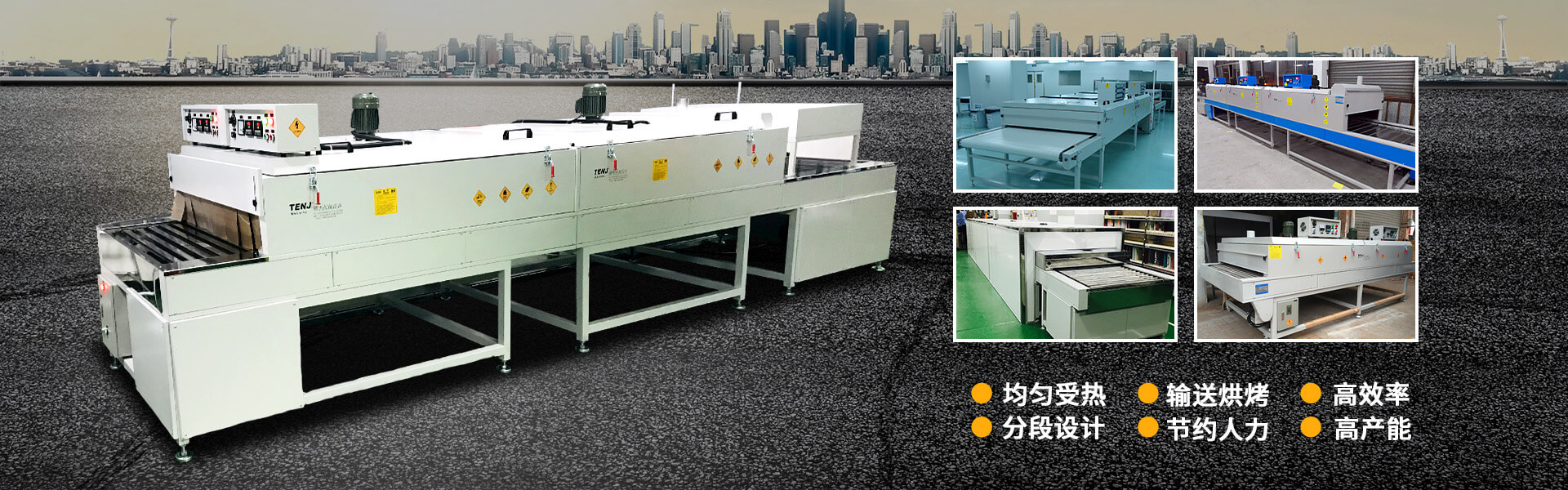 東莞市騰杰機械科技有限公司,騰杰機械成立于一九九七年,是一家專業規劃、設計、制造、安裝各類烘烤設備及自動化生產線,,涂裝設備與倉儲,烤箱的生產廠家。主要產銷烤箱,精密烤箱,隧道爐,UV機械,培養箱,真空烤箱等設備. 我們秉承以客戶為中心,全方位服務的原則,堅持以質量求生存,以信譽求發展的追求目標;公司始終按照合理物流五要素,即自動化,安全,高效率,無污染,精心設計最適合用戶的產品,讓客戶滿意是我司一貫的方針。能與您合作是我們最大的心愿,也是您最佳選擇! 產品適用于各家電、電子、電腦、五金、塑料、皮具、燈飾、家具,食品等各行制造企業。主要項目有:精密烤箱,隧道爐,紅外線隧道爐,隧道烤箱,UV機械,工業烤箱,高溫烤箱,烘箱,烤箱,焗爐,電烤箱,隧道烤箱,輸送烤箱,培養箱,真空烤箱,收縮包裝機。我們的原則: 以客戶為中心,全方位服務。我們的追求:以質量求生存,以信譽求發展。我們的服務:售前,售中,售后24小時服務...